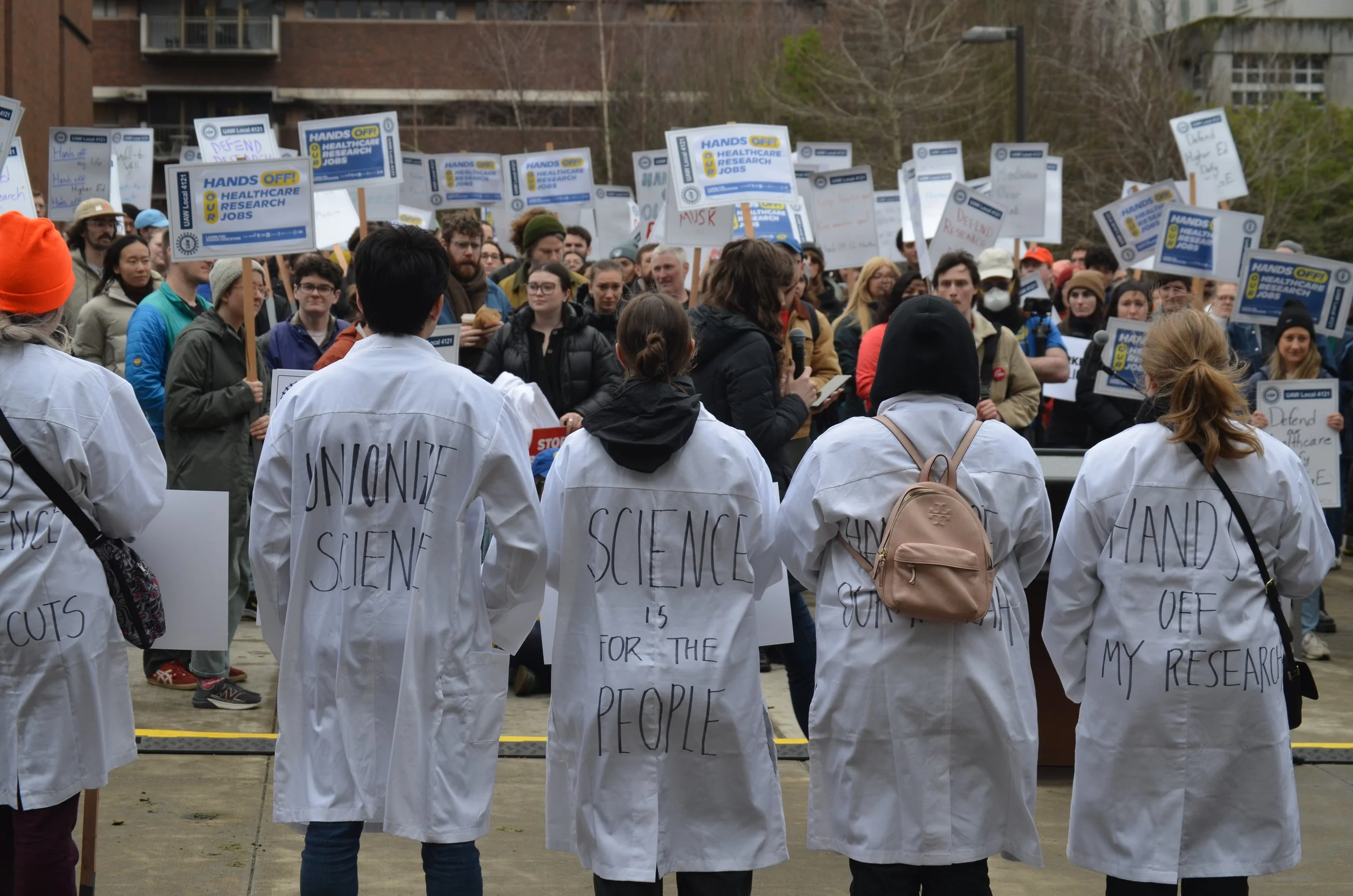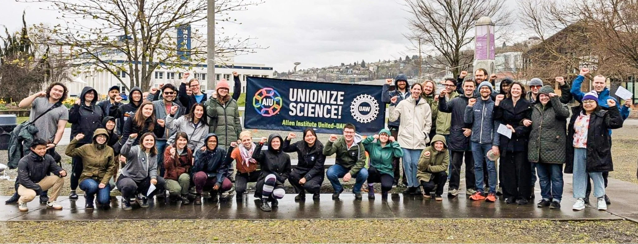 Researchers at the Allen Institute in Seattle, are forming a union (AIU-UAW), and launched their card authorization campaign with a rally and organizing drive.